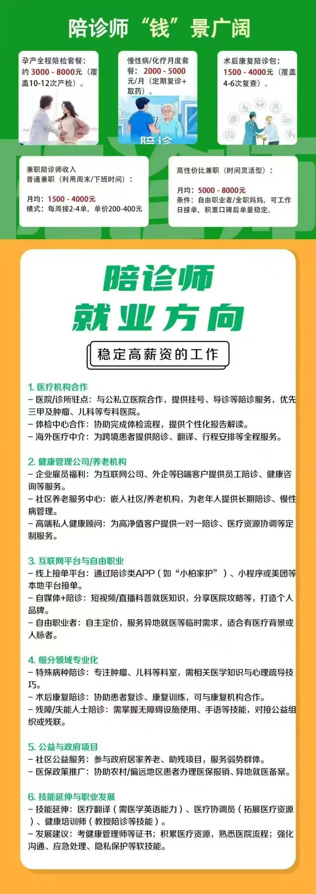陪诊行业新兴,从业人员少,市场缺口大,能够持证上岗的人才很稀缺,很好就业;
