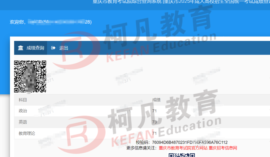 热烈祝贺柯凡学员《重庆考区》2025年成人高考开创佳绩!