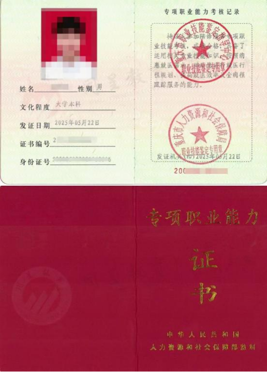 1. 国家职业,市级统考:该证书作为国家职业资格证书的重要组成部分,由人社部统一监制,盖有发证机关重庆市人社局公章,长期有效且全国通用。重庆市实行市级统考,确保证书的权威性和专业性。